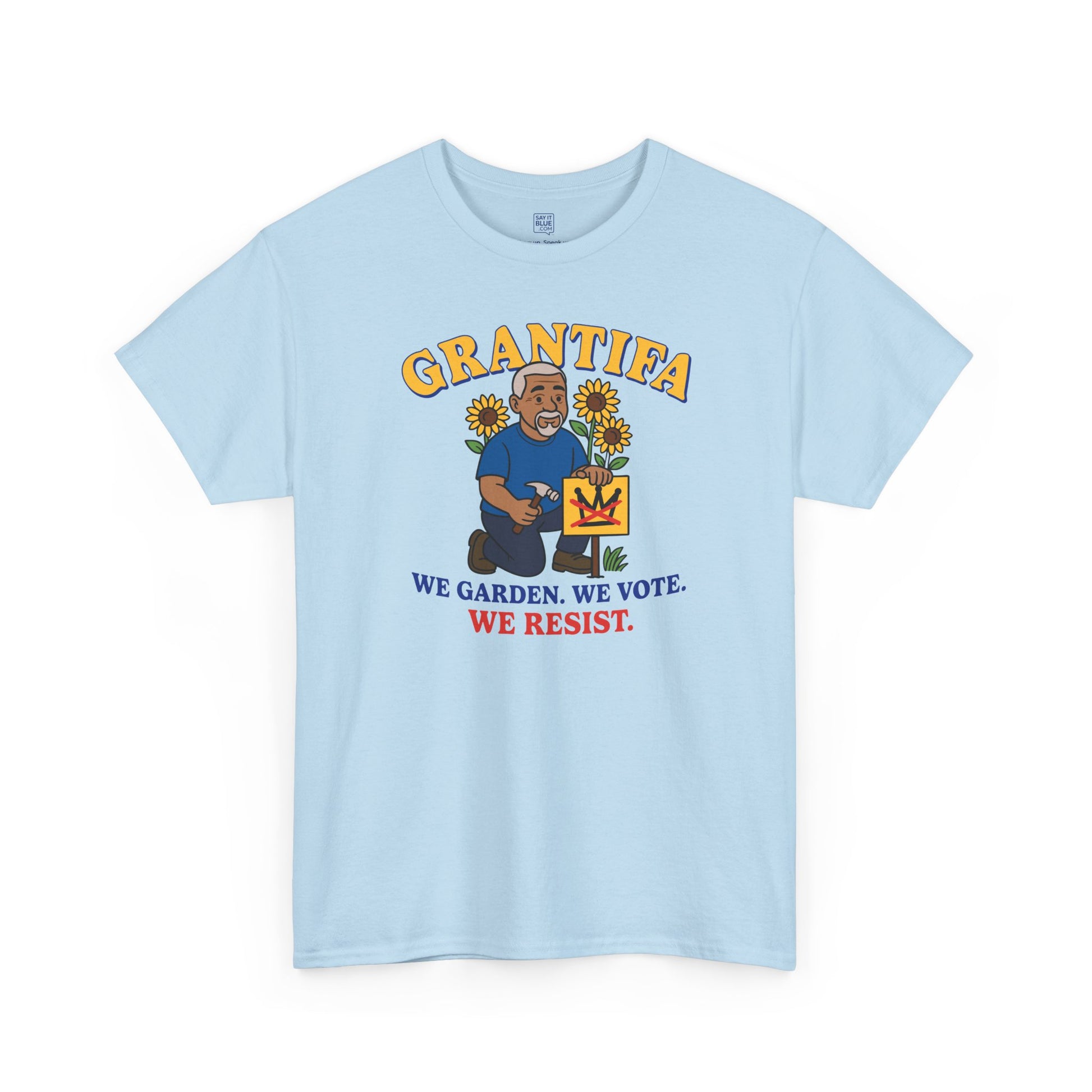 For the grandpas who know democracy grows best when tended with care—who plant hope, pull weeds of injustice, and stake their values firmly in the ground. With warm humor, bright sunflowers, and steady spirit, it’s perfect for anyone who believes resistance—like a good garden—thrives through patience and love. Plant your voice. Wear it proudly. 🌻✊