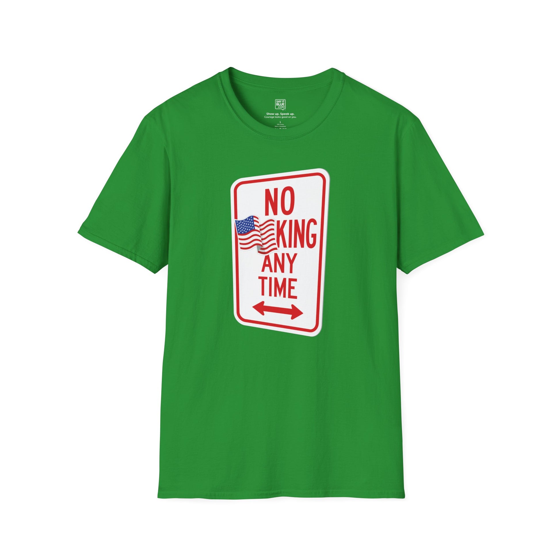 Democracy doesn’t do monarchs, and this design makes it clear: America has no place for kings or would-be dictators. A witty twist on a street sign that doubles as a street-smart protest shirt—perfect for rallies, marches, and standing up against authoritarian rule.