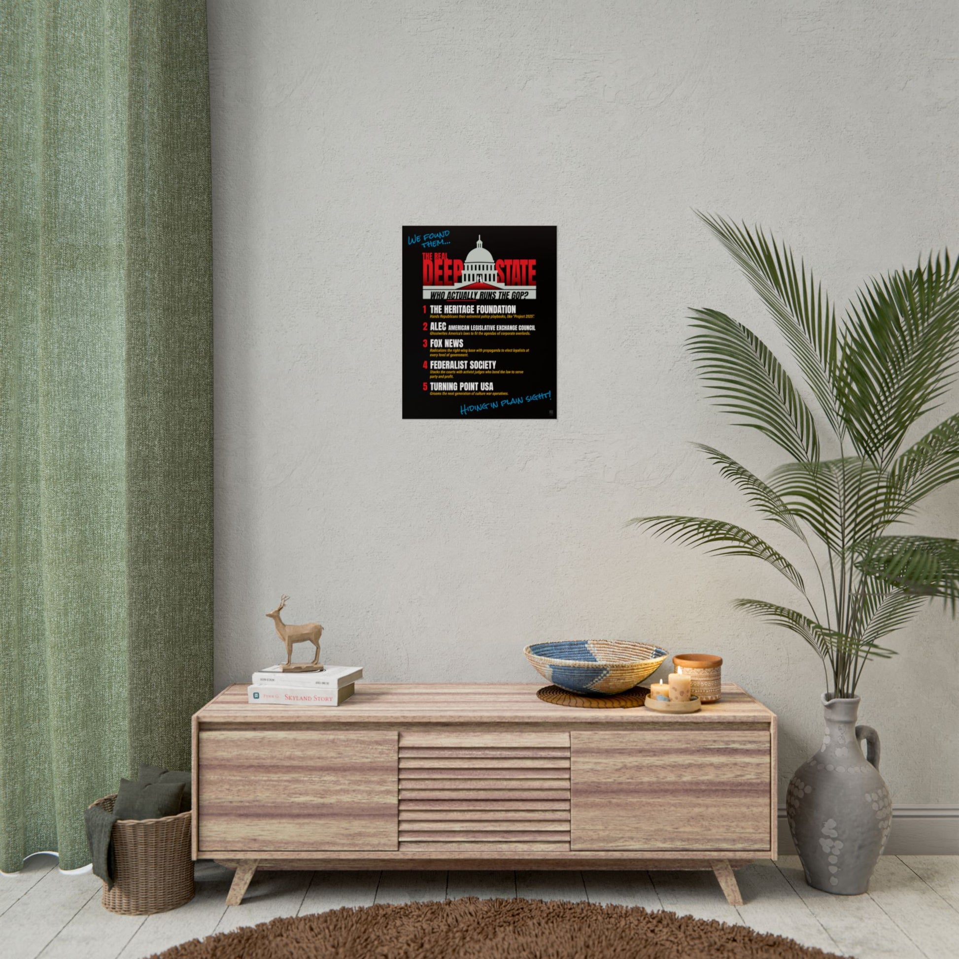 Expose the power behind the curtain. This bold art print takes aim at the true unelected forces driving the GOP—with stark design and unapologetic truth. Featuring the striking Capitol silhouette and a callout of five key players, this piece is as provocative as it is visually sharp.